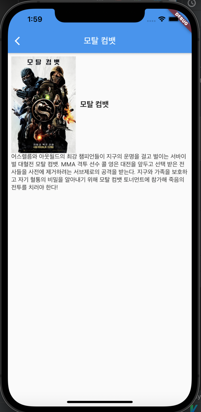 내가 만든 영화정보를 가져오고 글자로 검색하는 테스트 앱이 있다. 화면은 다음과 같다.